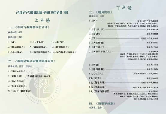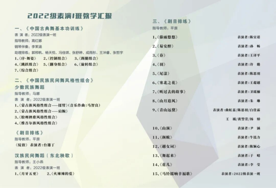展演通过中国古典舞基本功训练、中国民族民间舞风格性组合、剧目排练等课程,系统呈现了舞蹈表演及舞蹈编导等核心课程的教学成果。学生们在肢体语言的精准表达中,展现了卓越的舞蹈表演能力又通过创新性的编创实践彰显了守正创新的艺术追求。