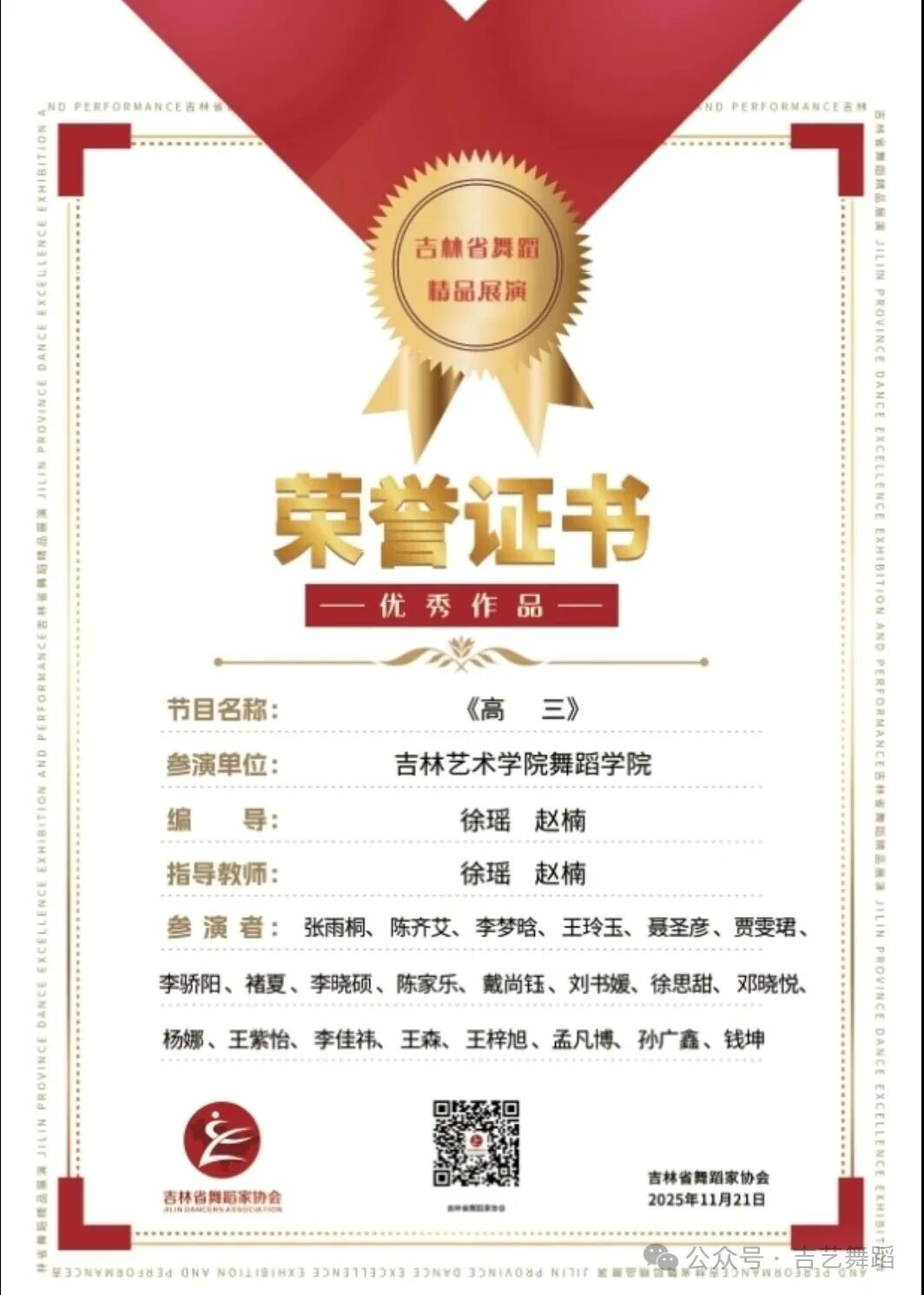 三部作品的成功入展,是我院师生团结协作、勇于创新的生动体现。从主题挖掘到编创排练,从舞台呈现到细节打磨,每一个环节都凝聚着创作团队的心血与汗水。这不仅展示了我院教师的创编实力和学生的表演才华,更彰显了吉艺舞院师生同心同德、追求卓越的精神风貌。
