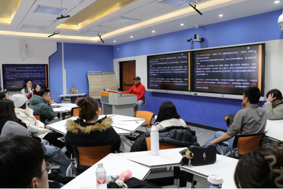 在上午的讲座中,赵铁春教授以“三点三纵一横线”为独特视角,探讨了中国民族民间舞的现状与当代表达。他首先梳理了学科发展历程,重点讲解了民族民间舞教材建设与“扎根”实践,并通过剖析“原生形态”与“当下作品”的对比关系,层层深入地揭示了民族民间舞的文化演进逻辑。